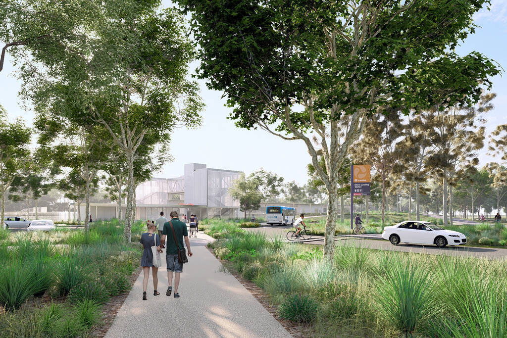 The updated design repositions the station to align with Eddy Avenue to improve customer amenity and community safety. Improved walking and cycling connections to local destinations will be provided, as well as a new cross-corridor connection between Houdini Terrace and Holmview Road.
